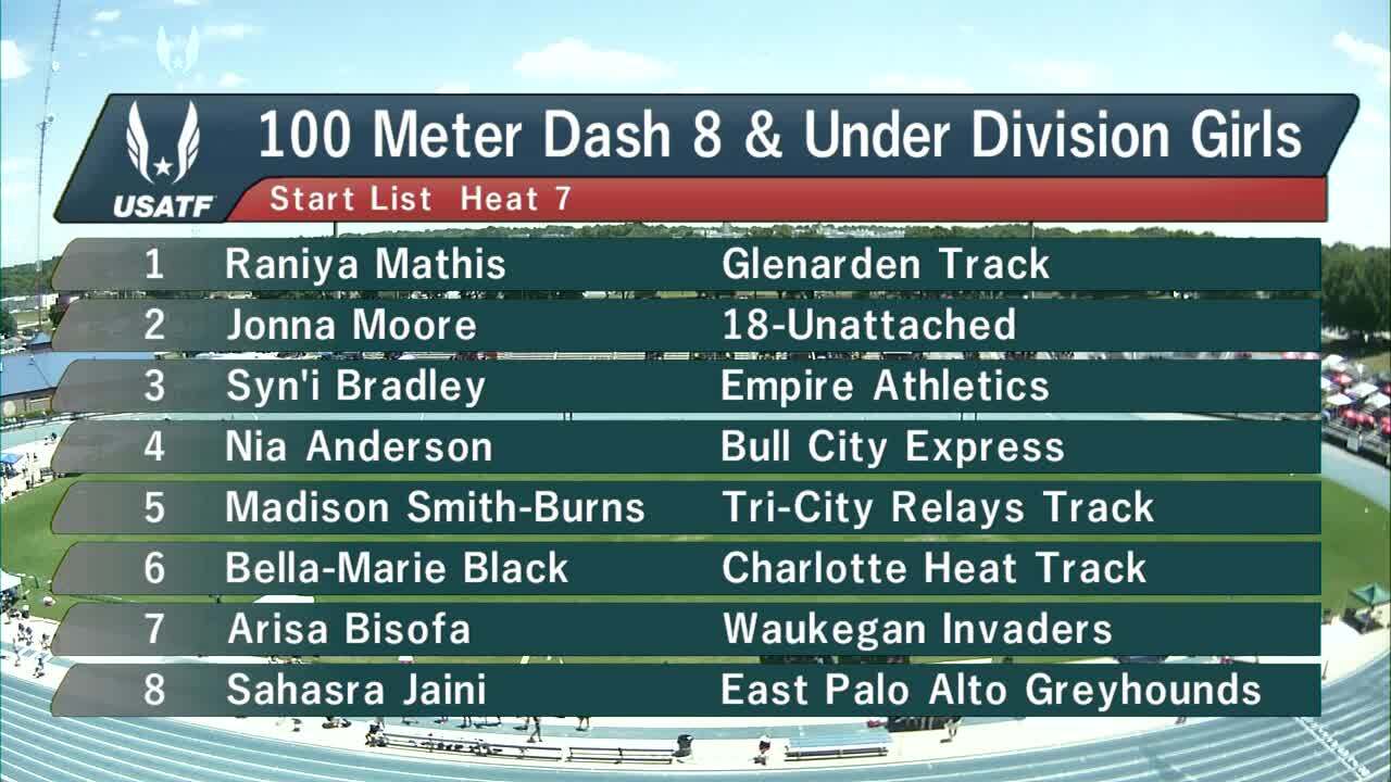 Girls 8 and Under 100m Prelim Heat 7 - USATF Hershey Junior Olympic National Track and Field Championship 2018