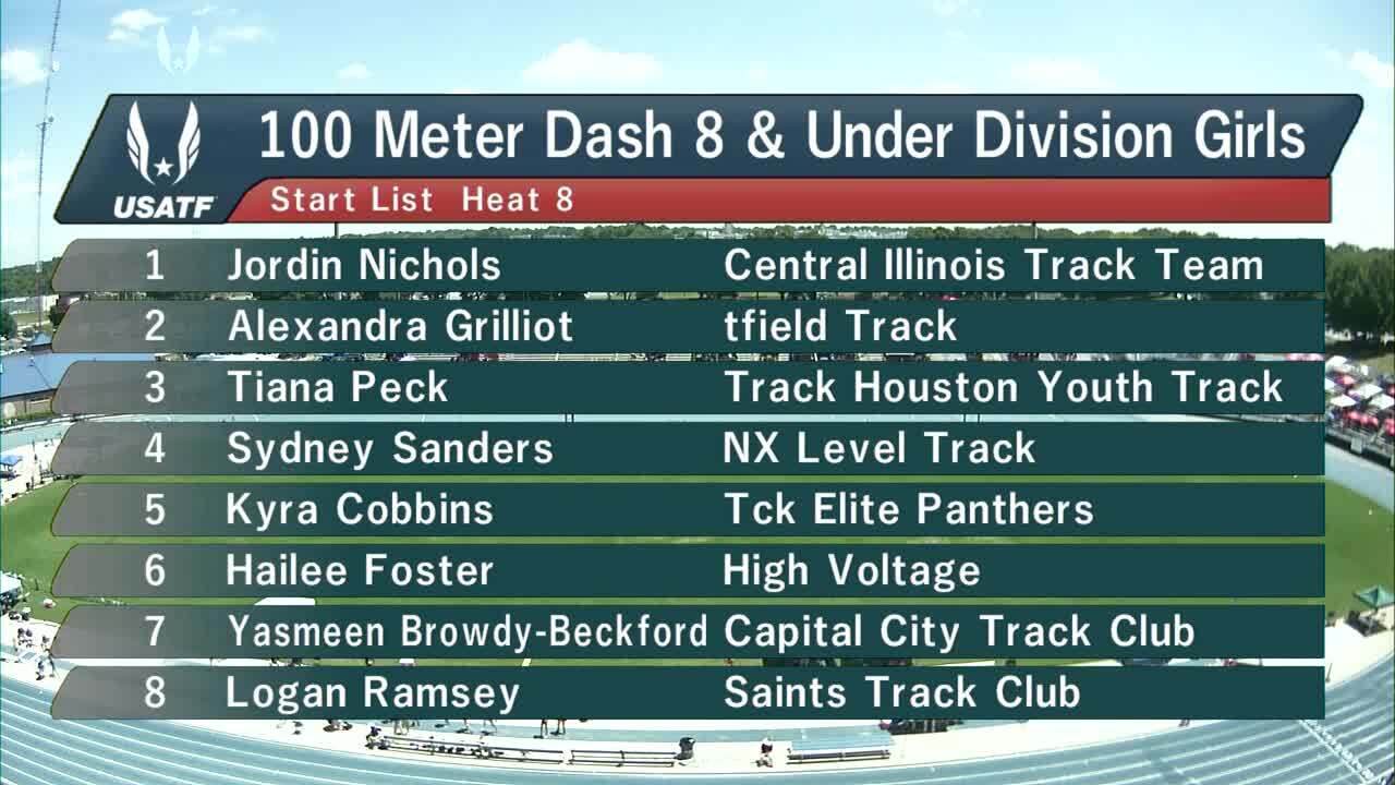 Girls 8 and Under 100m Prelim Heat 8 - USATF Hershey Junior Olympic National Track and Field Championship 2018
